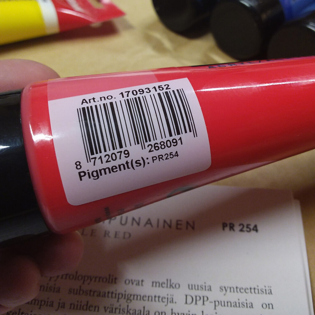 Valitettavasti tiedon haku on yllättävän hankalaa. Pigmenttejä ja väriaineita koskevat tiedot ovat hajallaan ja usein tietokannoista pitää etsiä tietoa CAS-numerolla, joka on eri kuin yleensä pigmenttipakkauksissa lukevat tunnukset (C.I.-numerot).